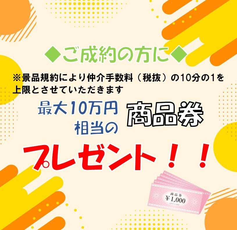 ※景品規約により仲介手数料(税抜)の10分の1を上限とさせていただきます