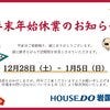 【年末年始休業のお知らせ】 平素は格別のご高配を賜り、厚く御礼申し上げます。 誠に勝手ながら下記の期間を休業とさせていただきます。 今後ともご愛顧賜りますよう宜しくお願い申し上げます。 ...