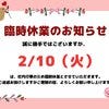 誠に勝手ながら、2月10日(火)は社内行事のため臨時休業とさせていただきます。 臨時休業中にいただいたお問い合わせにつきましては、2/12(木)より順次対応いたします。 お客様...