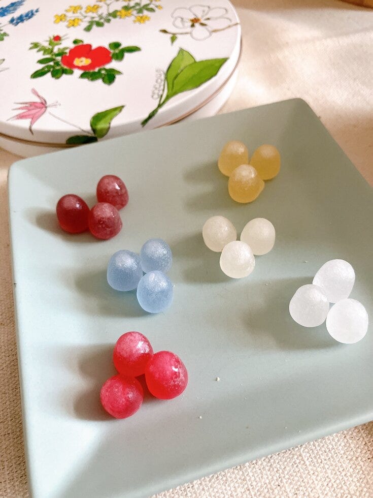 ワイン、ウイスキー、ハスカップ、梅酒、コアントロー、ペパーミントの6つの味。
