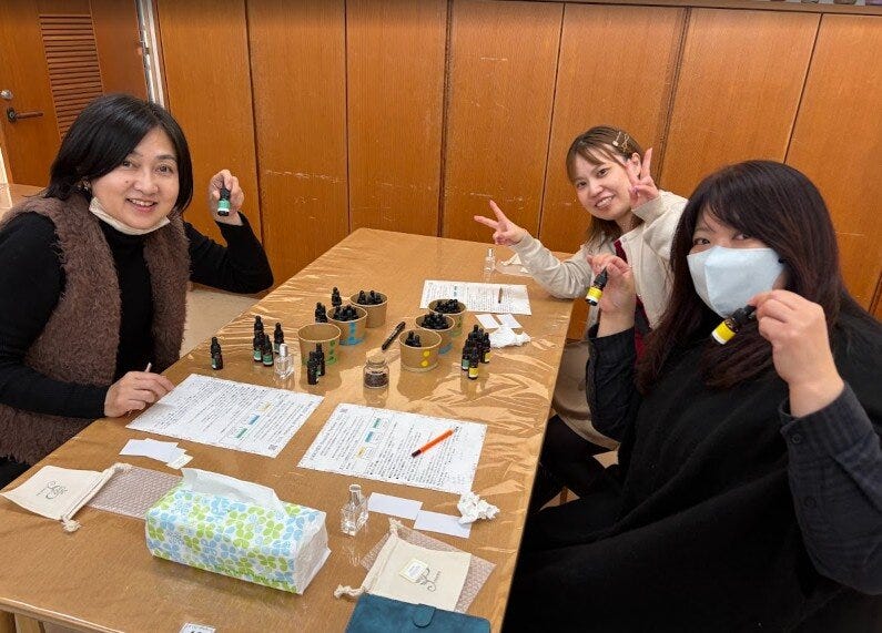 いろんな香りを調合して自分好みにするのですが、それぞれの好みがバラバラで誰一人同じ調合はいなかったそうな。