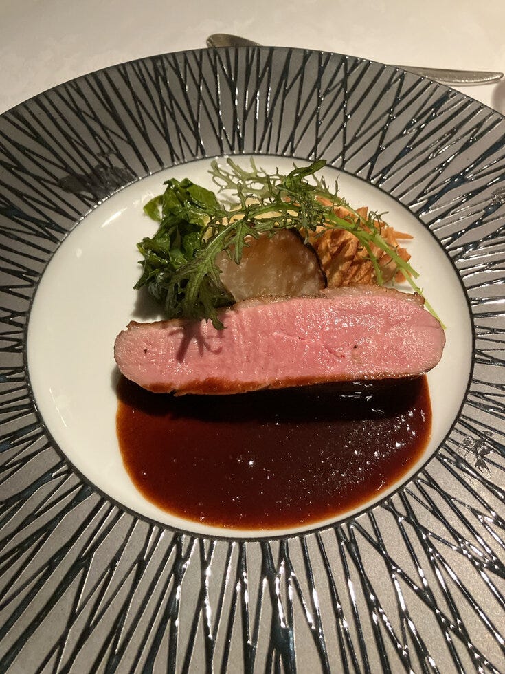 鴨胸肉のロースト 赤味噌と柚子胡椒のソース
