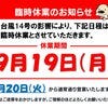 こんにちは。ハウスドゥ岩国南店です。 台風14号の影響に伴いまして明日、9月19日(月)は臨時休業とさせていただきます。 ご不便とご迷惑お掛けいたしますが、ご理解とご協力賜りますようお願い...